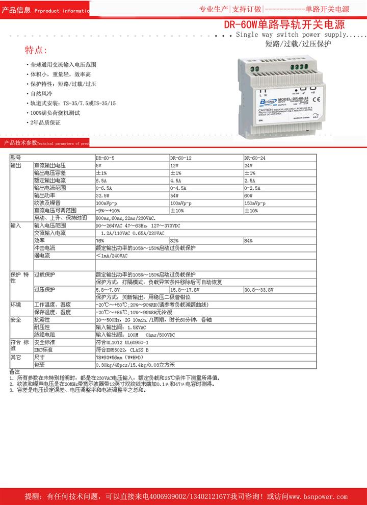 产品详情:DR-60-12由上海钡思那生产,总功率为60w,12V5A导轨开关电源,导轨式安装,用以各种控制箱等需直流电的场地,库存大量,请咨询;