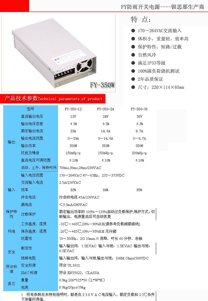 产品详情:12V25A和24v12.5a两个输出防雨开关电源,总功率达到300w,可以根据客户要求改成电压,但交货时间会更长一些。如果您想找到一个防雨的开关电源工厂,上海钡思那可以做到。作为您的选择之一,我们保有准确的质量和不错的服务。所有产品告别一年保修,达到两年;